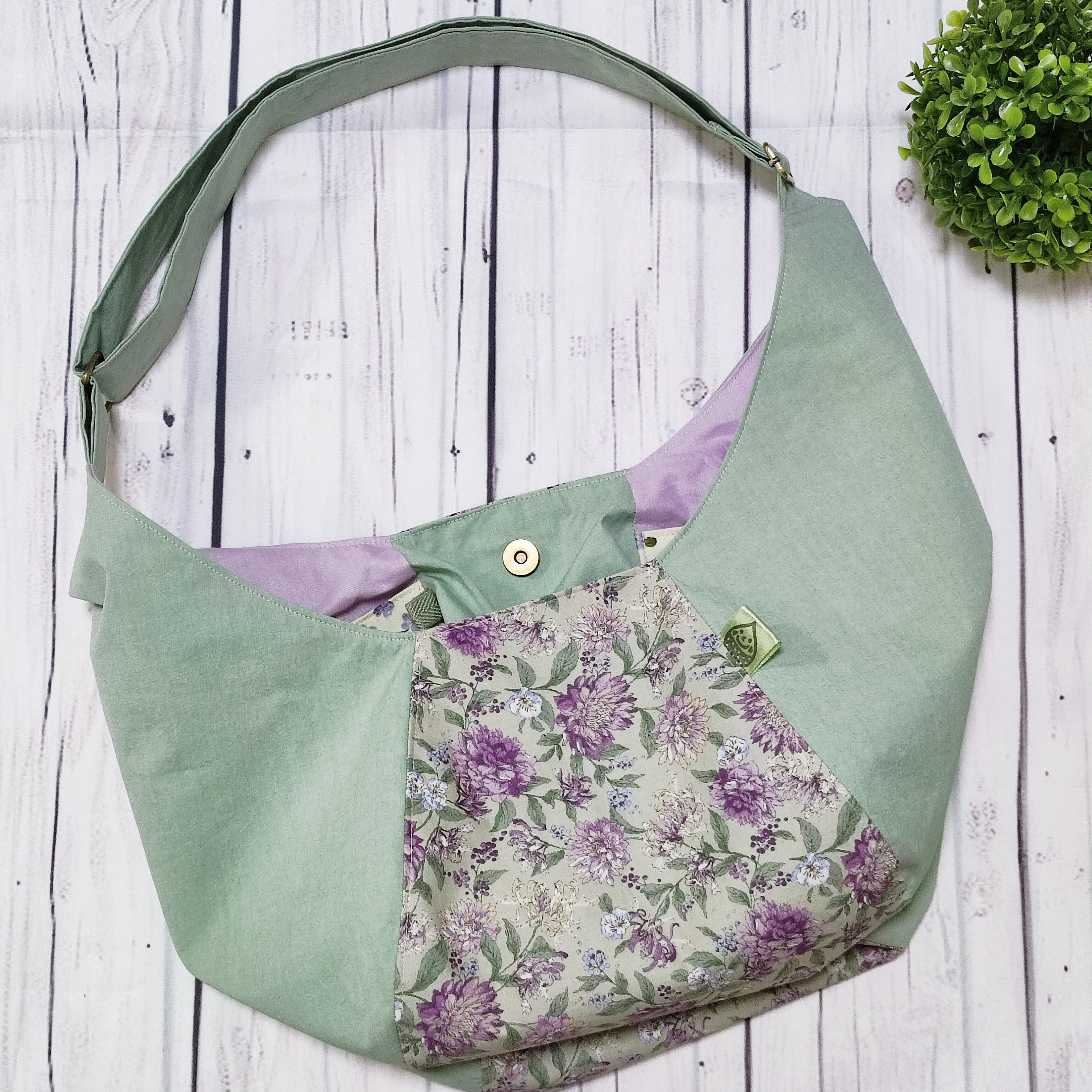 斜めがけするだけで可愛い♡ポンバッグPB80紫花✕ライトカーキ♡ショルダーバッグ体にフィットするボディバッグ斜めがけバッグ