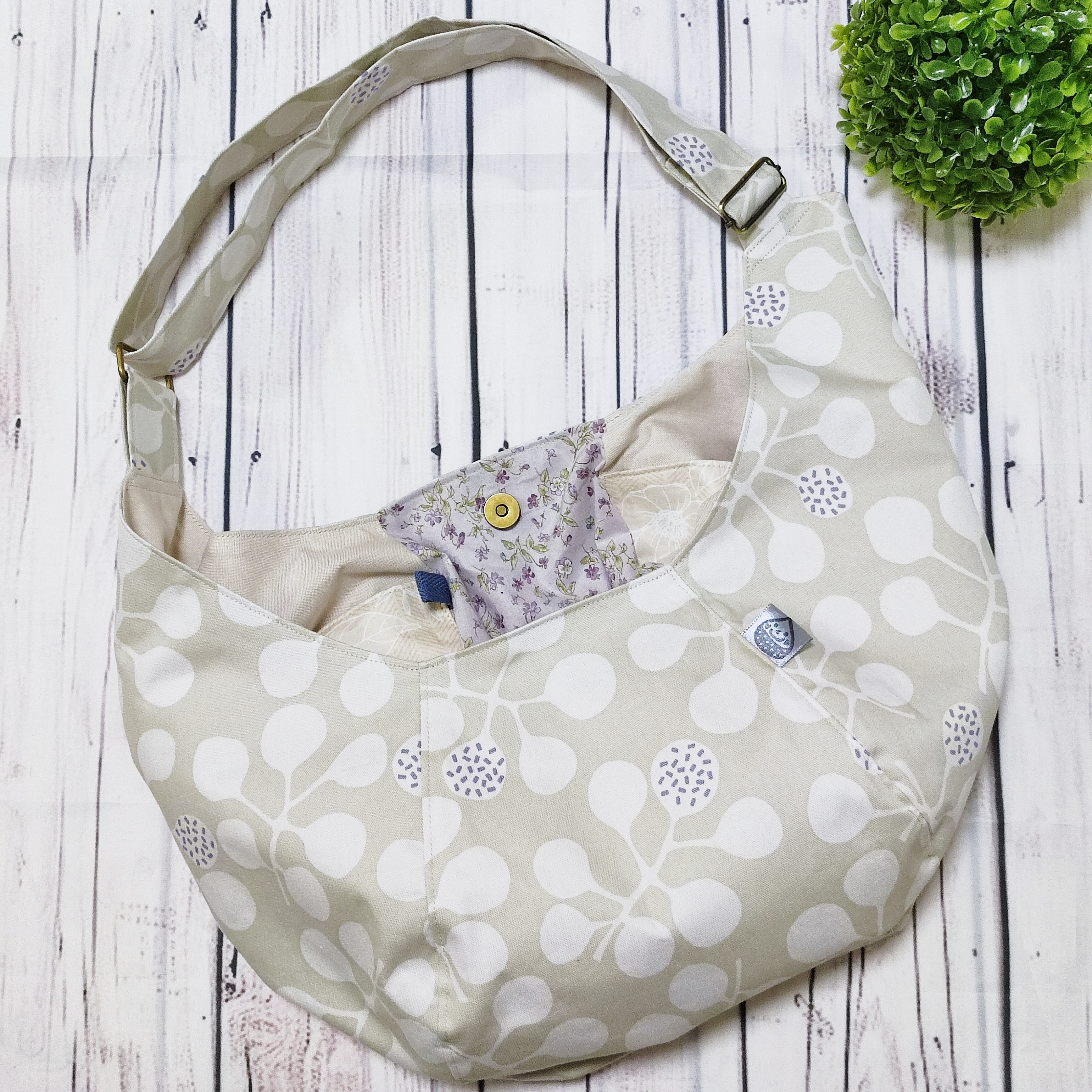 斜めがけするだけで可愛い♡ポンバッグPB83北欧丸い葉っぱグレージュ♡ショルダーバッグ体にフィットするボディバッグ斜めがけバッグ