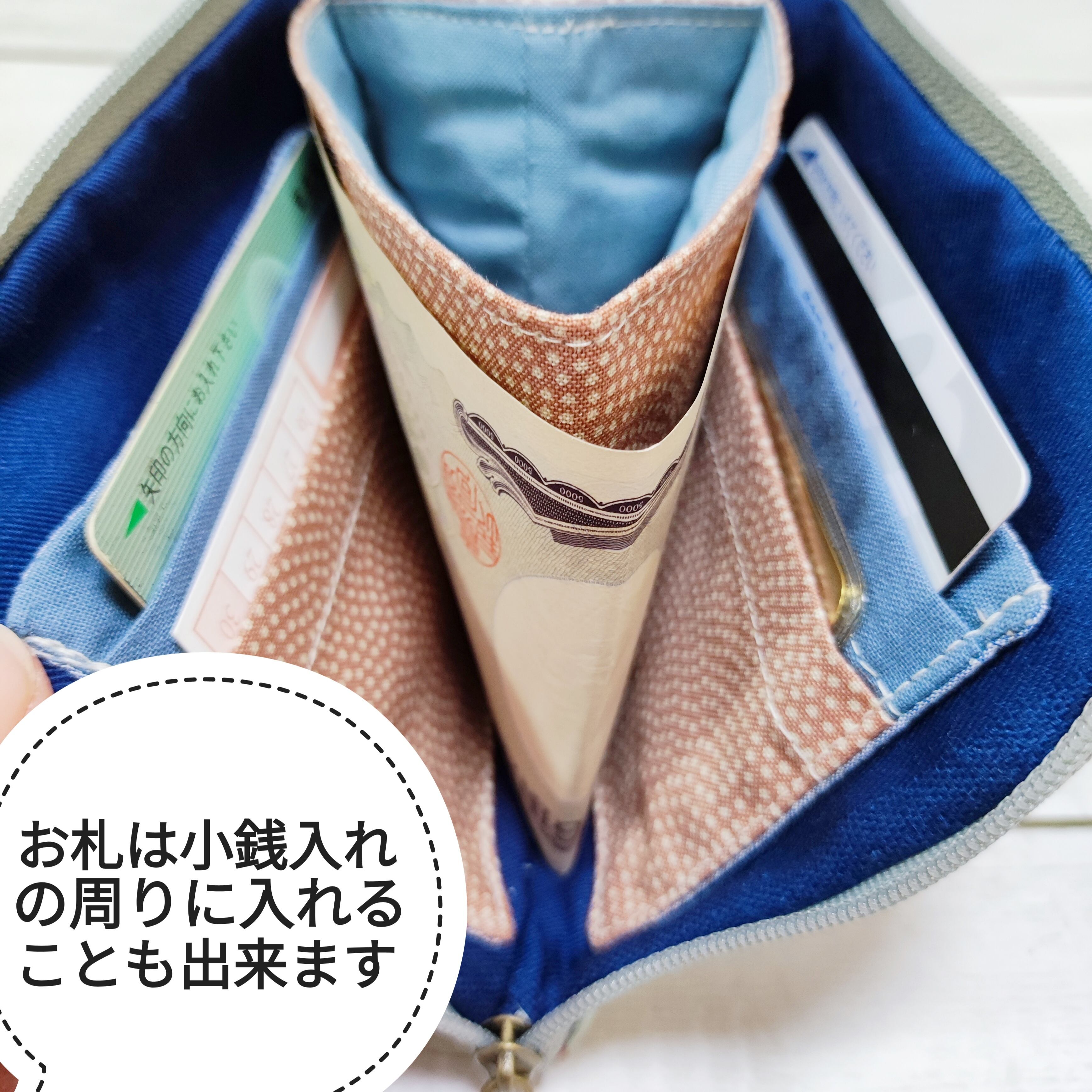 ・お札は2つ折り、または小銭入れの下、周りを通して入れることが出来ます。