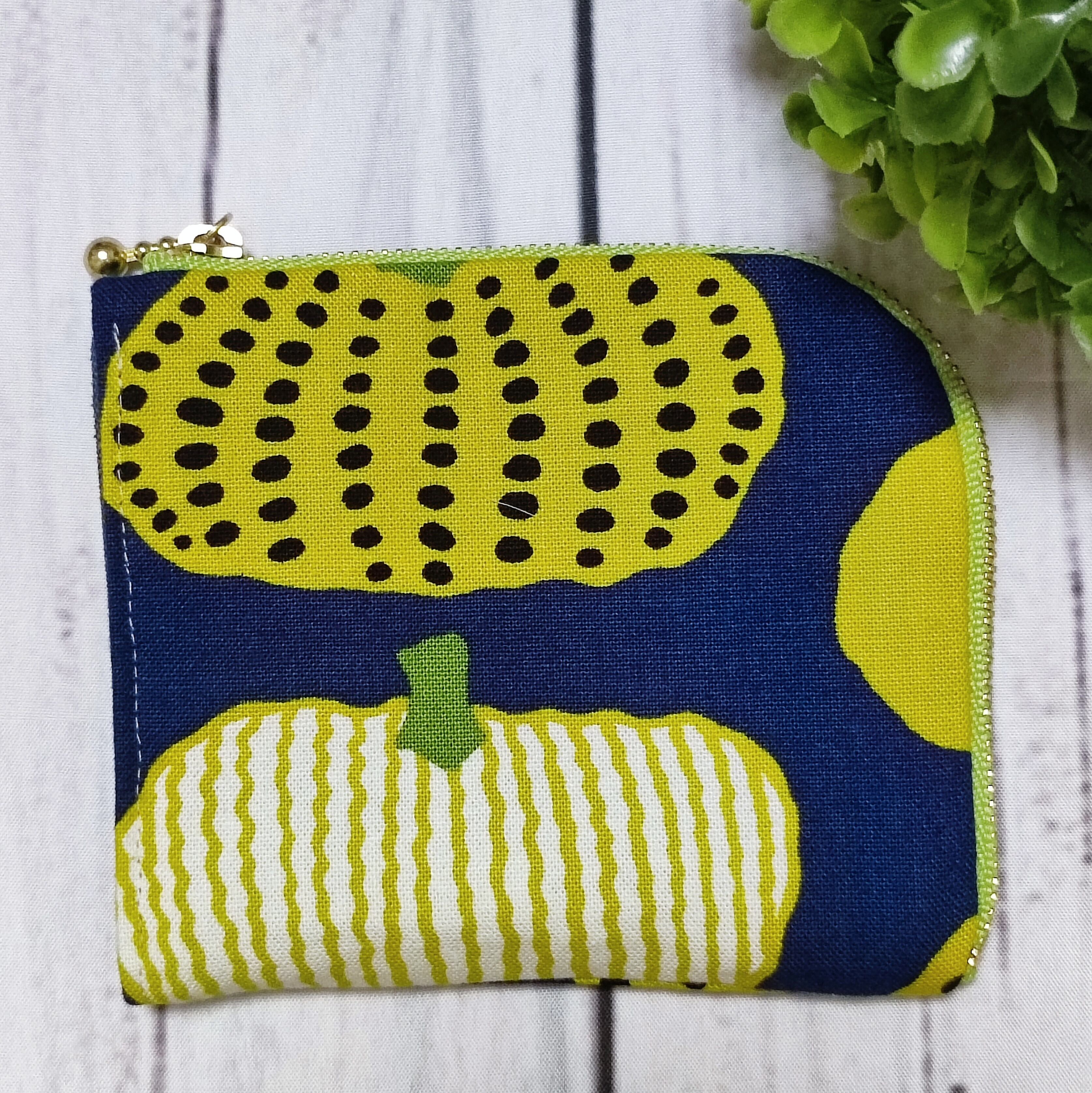 手のひらサイズのウキウキしちゃうミニ財布MW77かぼちゃネイビー☆コンパクト財布 L字ファスナー財布