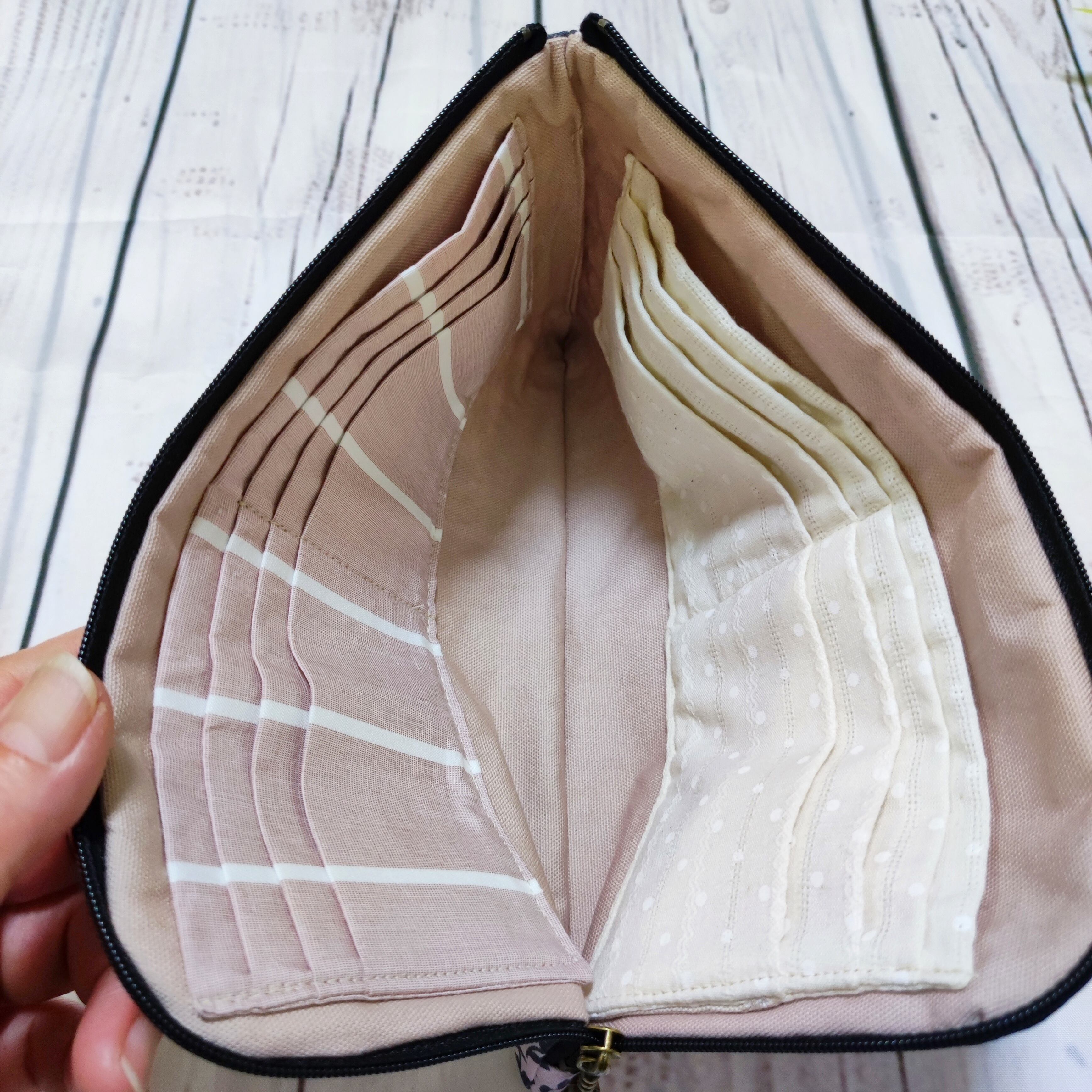 お薬手帳財布には接着芯を貼っていますが、使うほどに手に馴染んできます