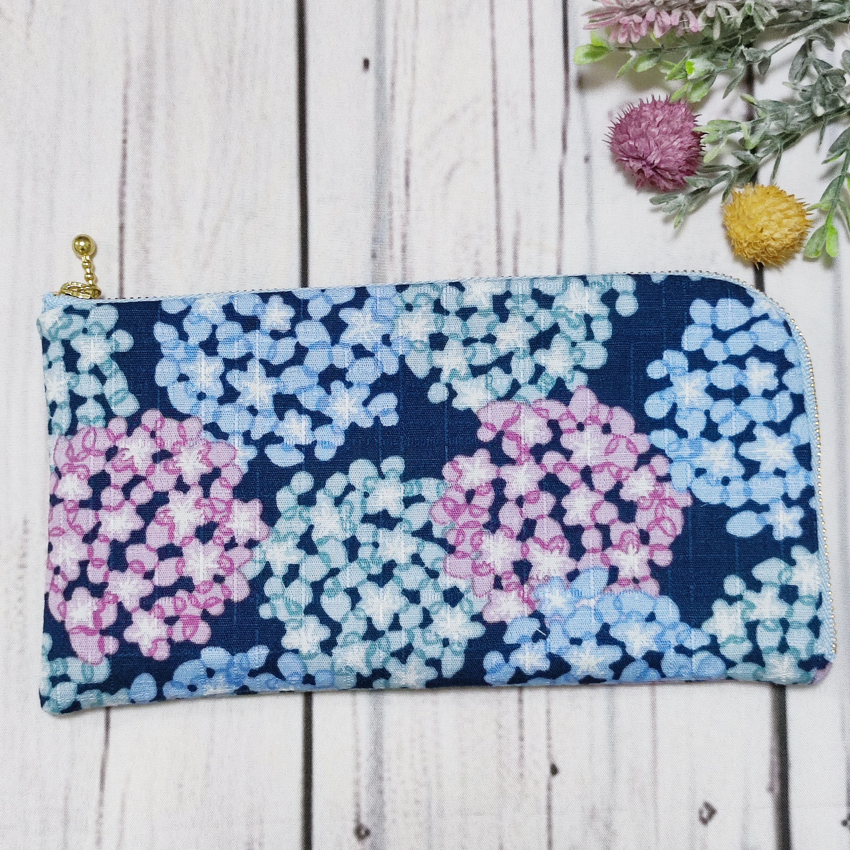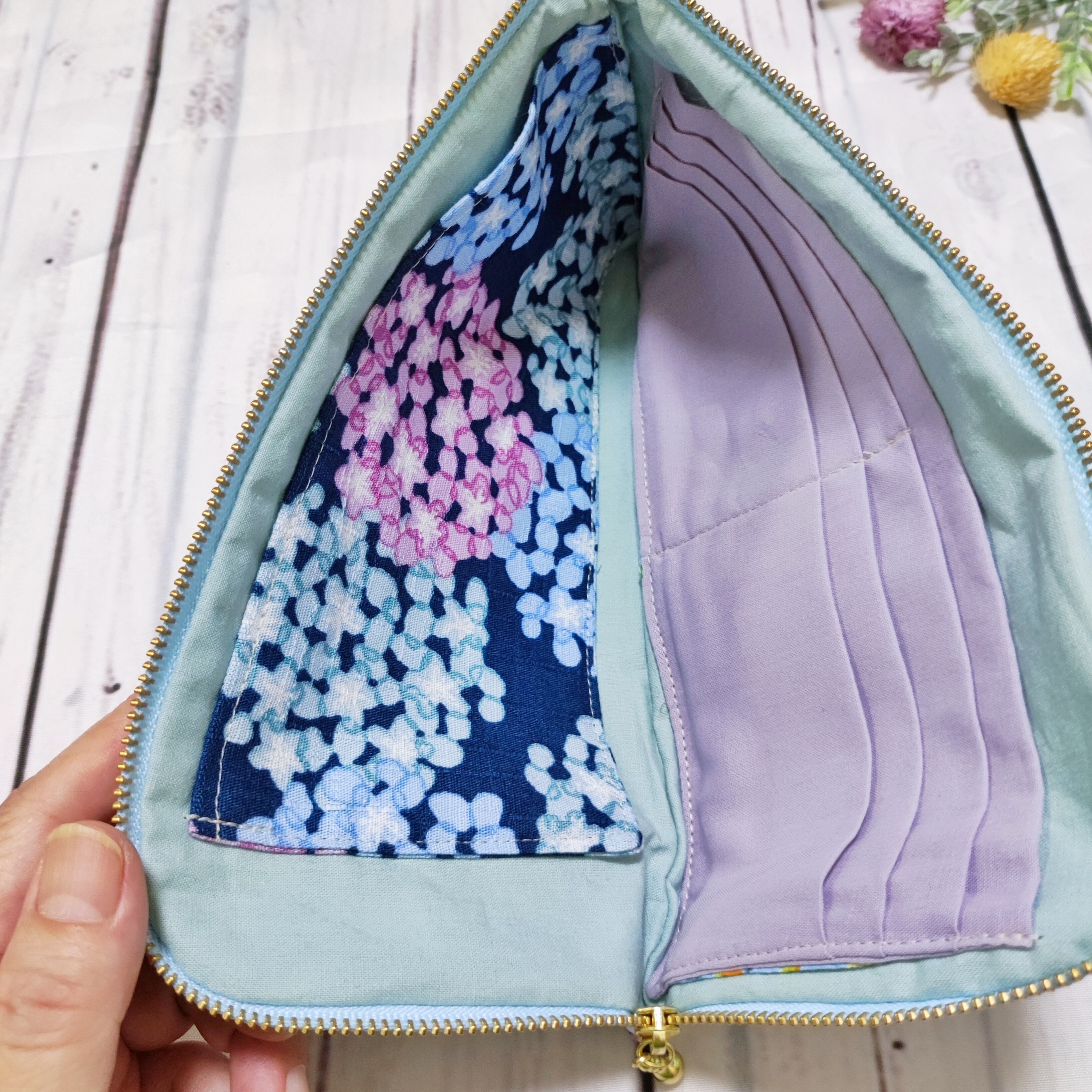肩こりさんにオススメ!軽くて薄い長財布LW125紫陽花ネイビー◯ポケット6つ+隠しポケット