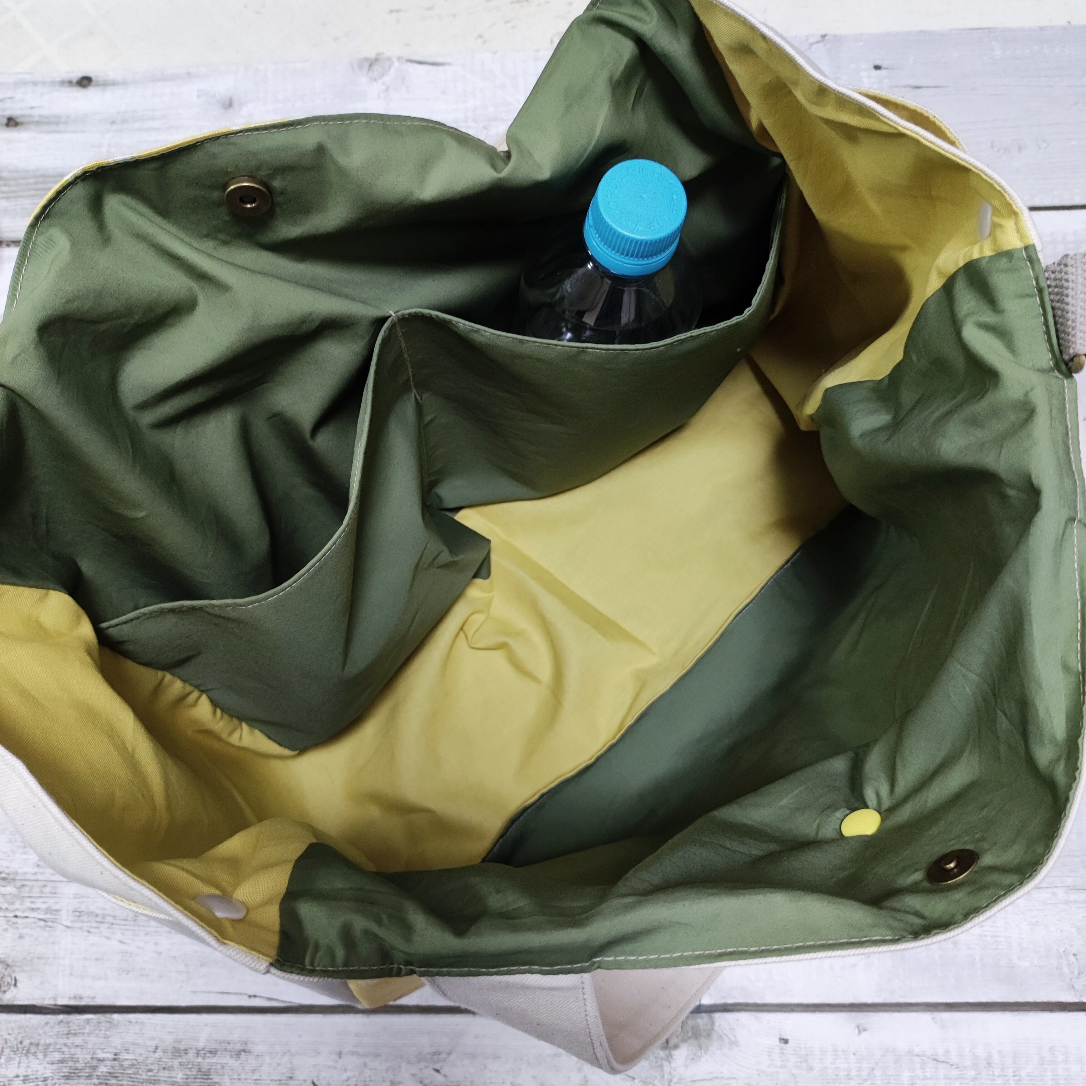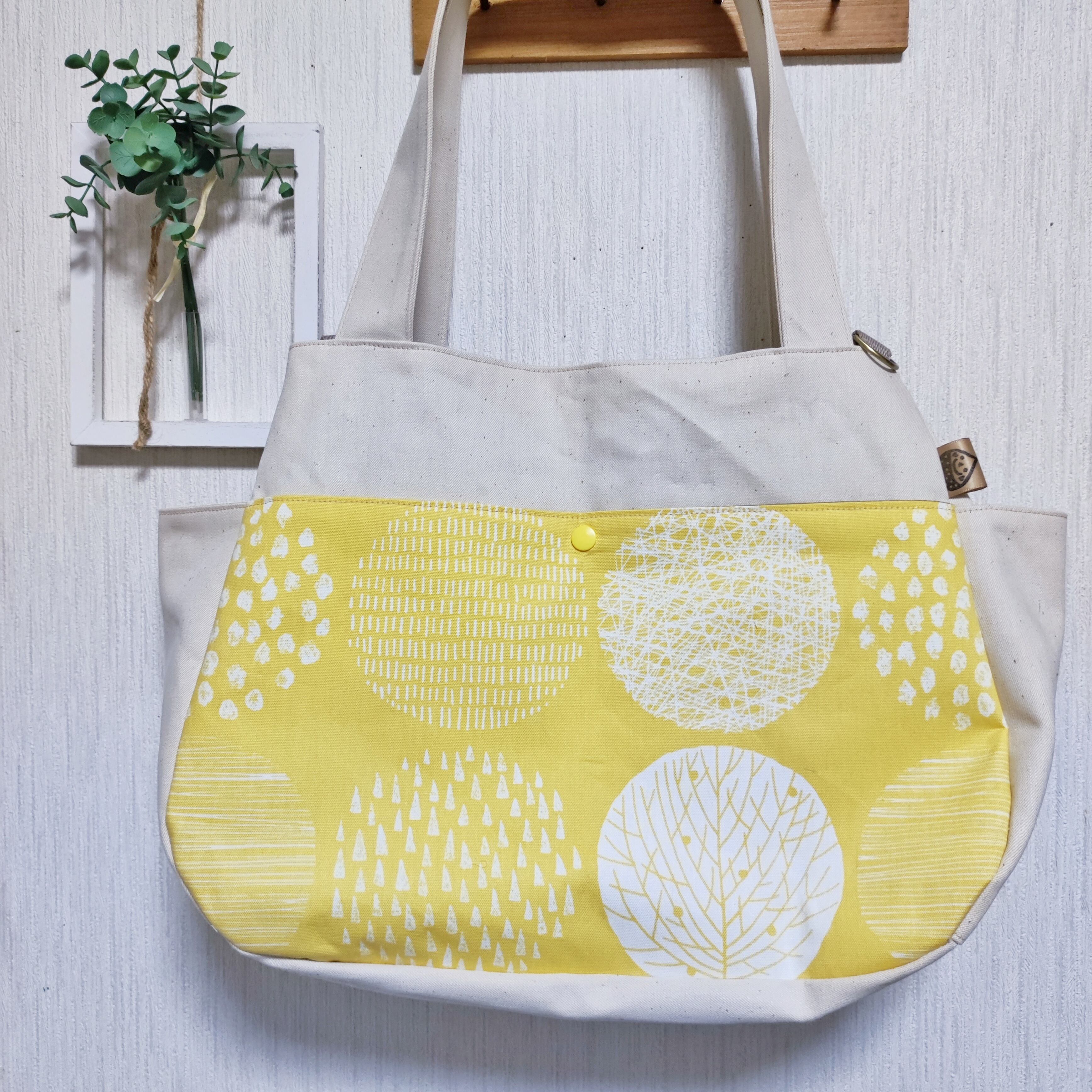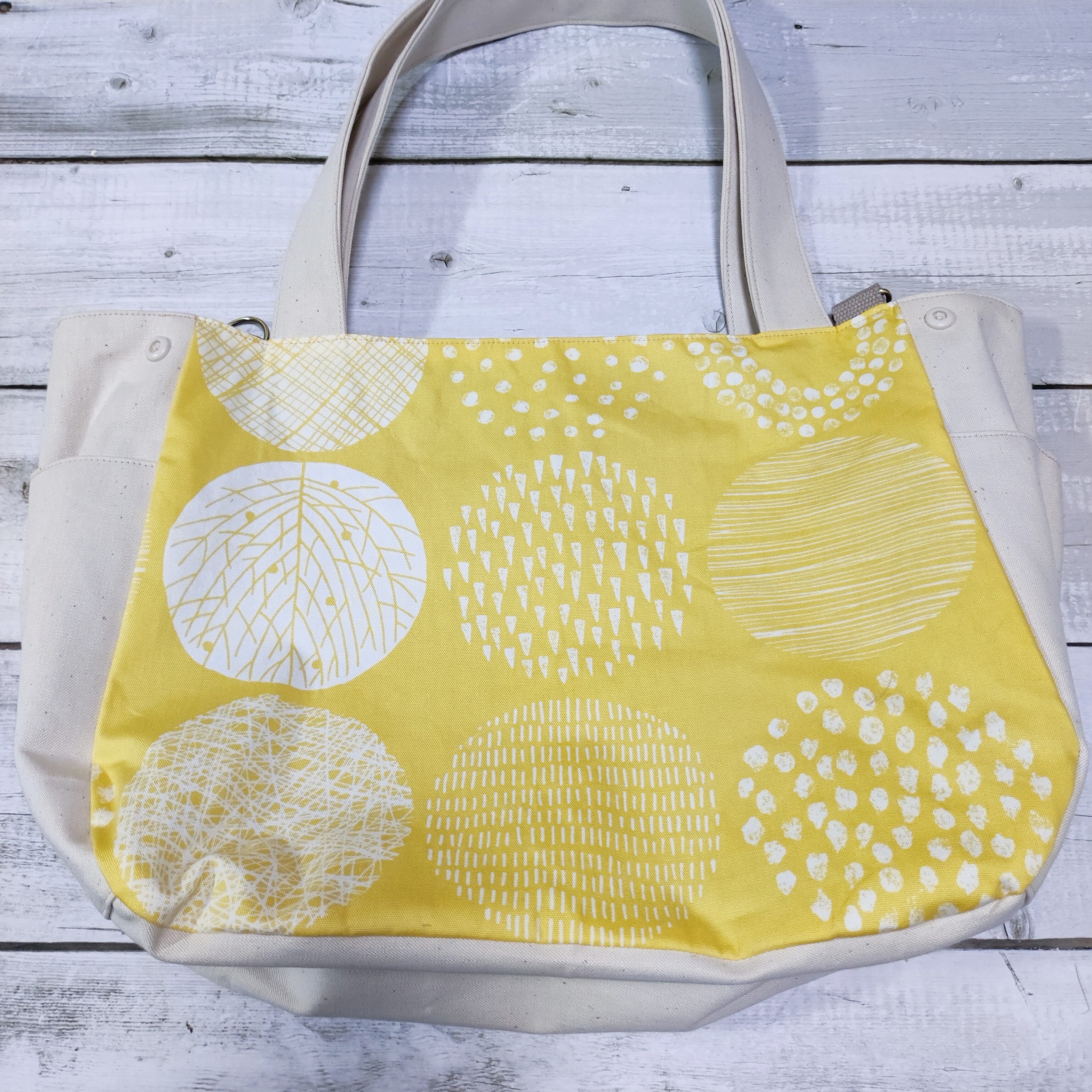 荷物多い方にぴったり☆大容量3wayバッグ☆北欧風サークルイエロー3way35☆荷物の量で持ち方や形が変わる!