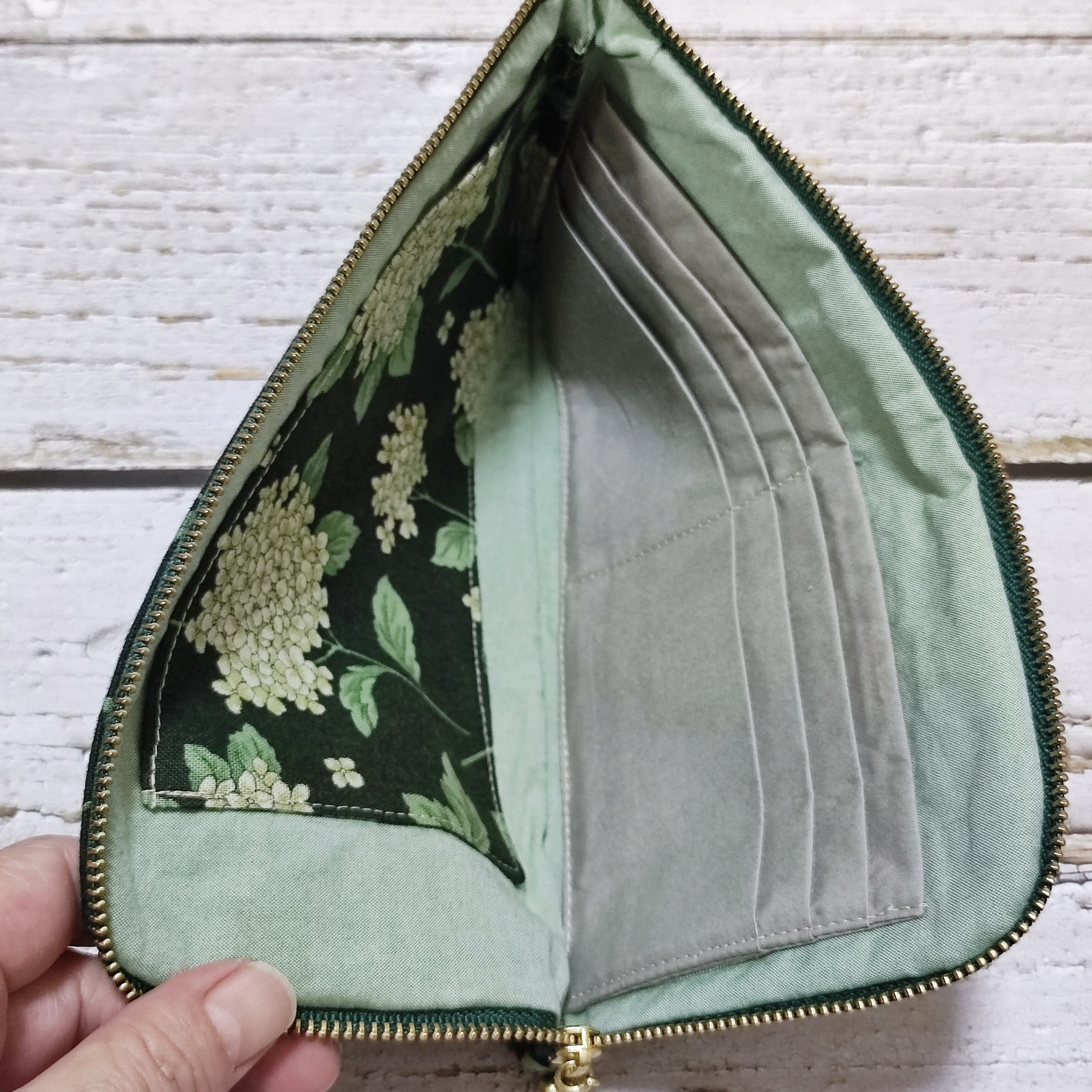 肩こりさんにオススメ!軽くて薄い長財布LW66紫陽花モスカーキカードポケット6つ+隠しポケット