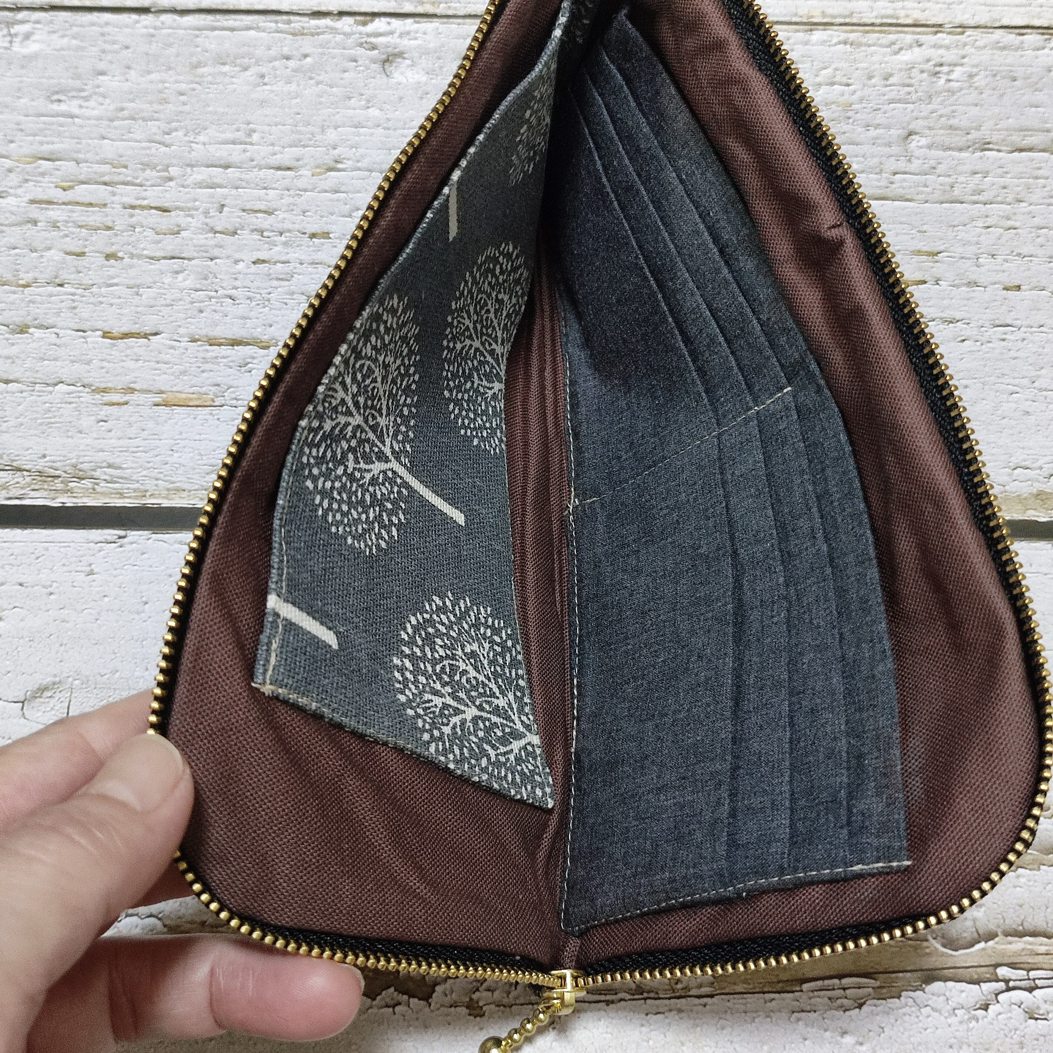 肩こりさんにオススメ!軽くて薄い長財布LW67北欧風樹木グレーカードポケット6つ+隠しポケット