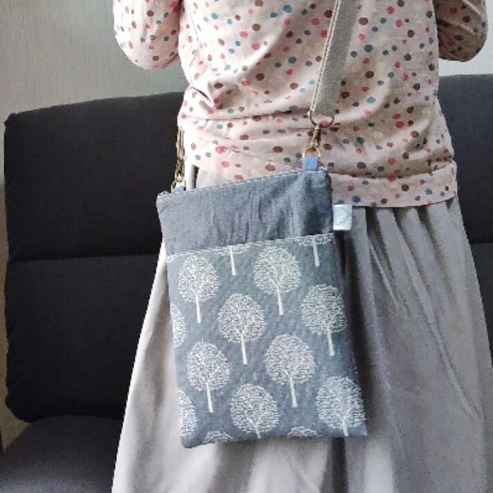 身軽にお出かけ!サコッシュSH80北欧風樹木グレー