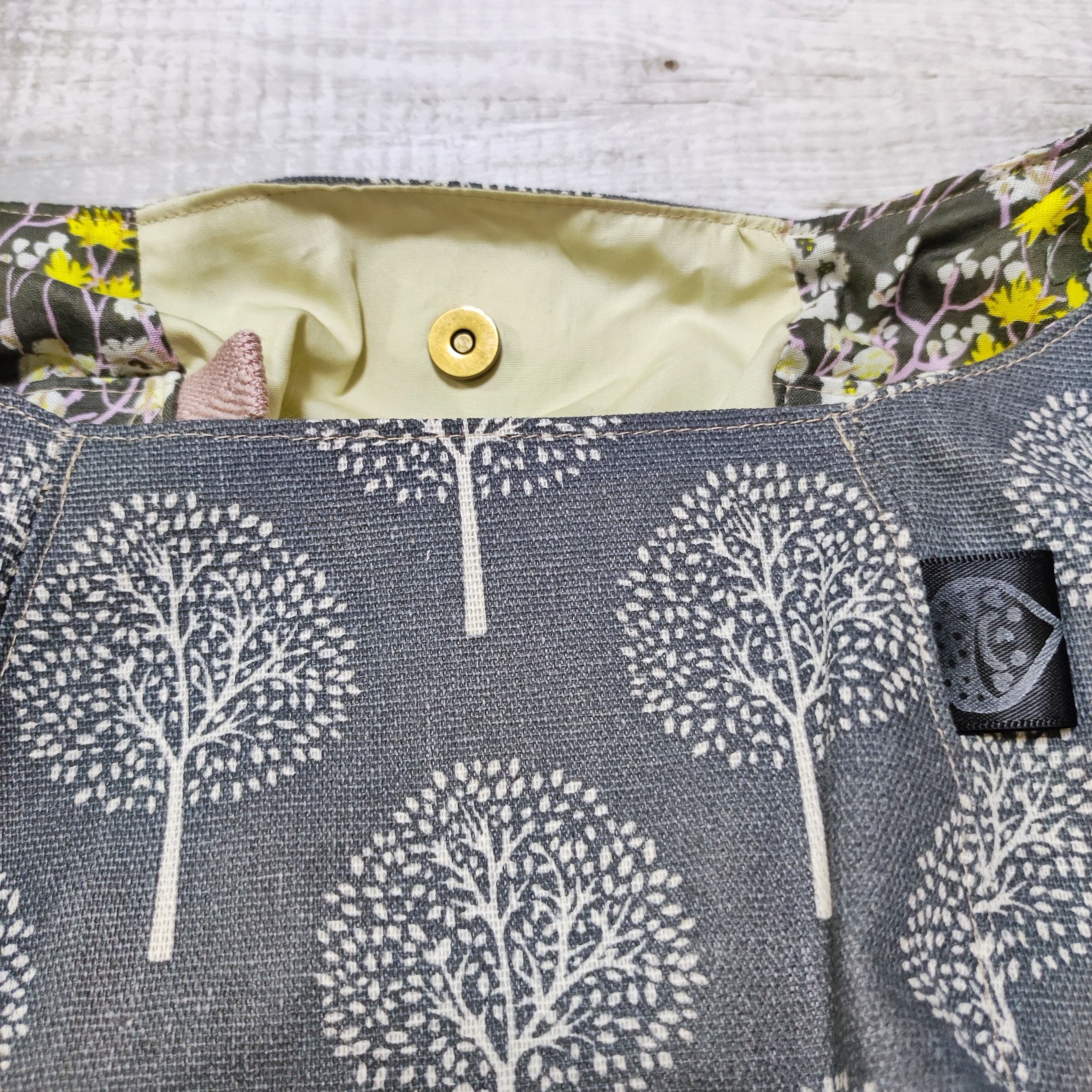 斜めがけするだけで可愛い♡ポンバッグPB52北欧風樹木グレーA♡ショルダーバッグ体にフィットするボディバッグ斜めがけバッグ