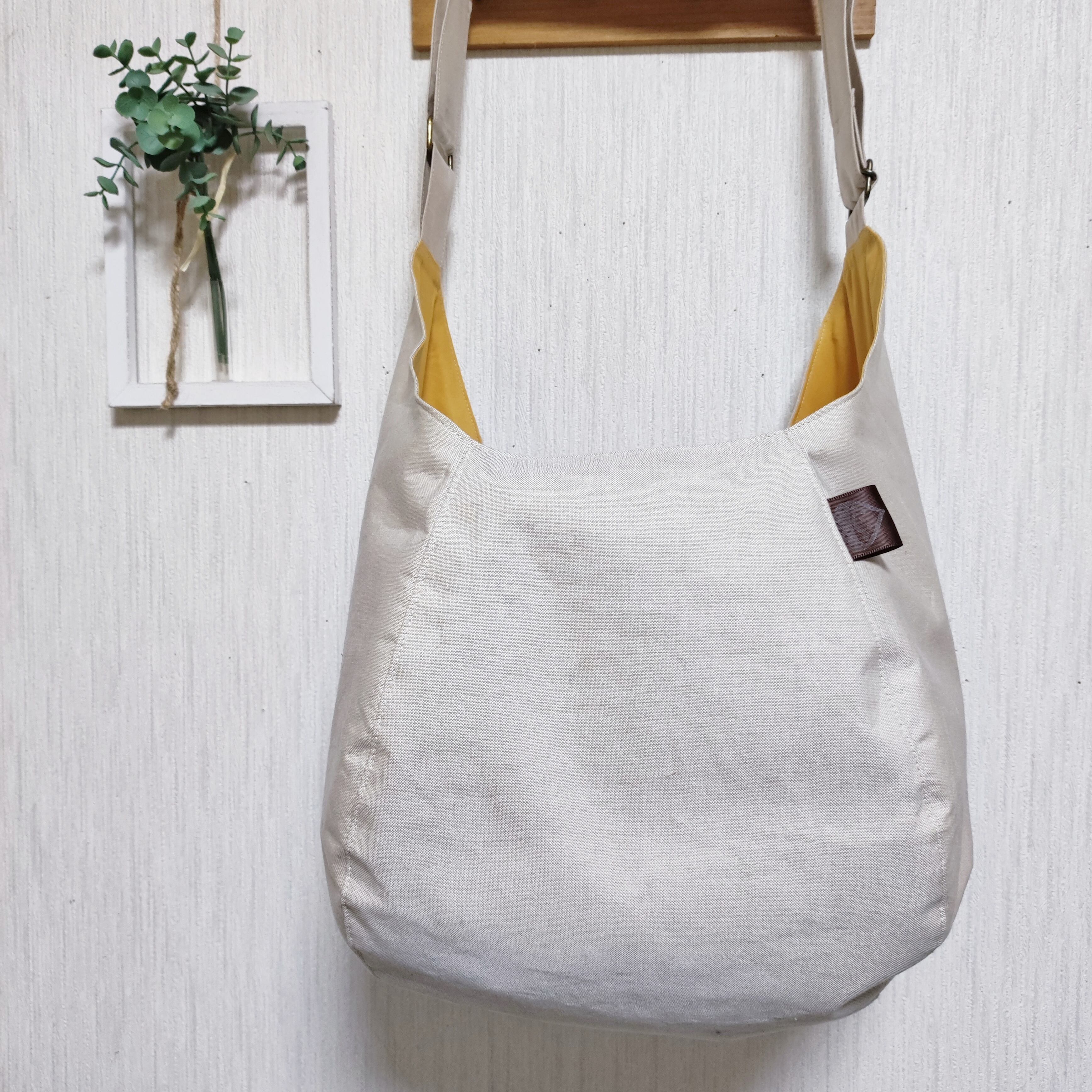 斜めがけするだけで可愛い♡ポンバッグPB57ダンガリー風薄ベージュ♡ショルダーバッグ体にフィットするボディバッグ斜めがけバッグ