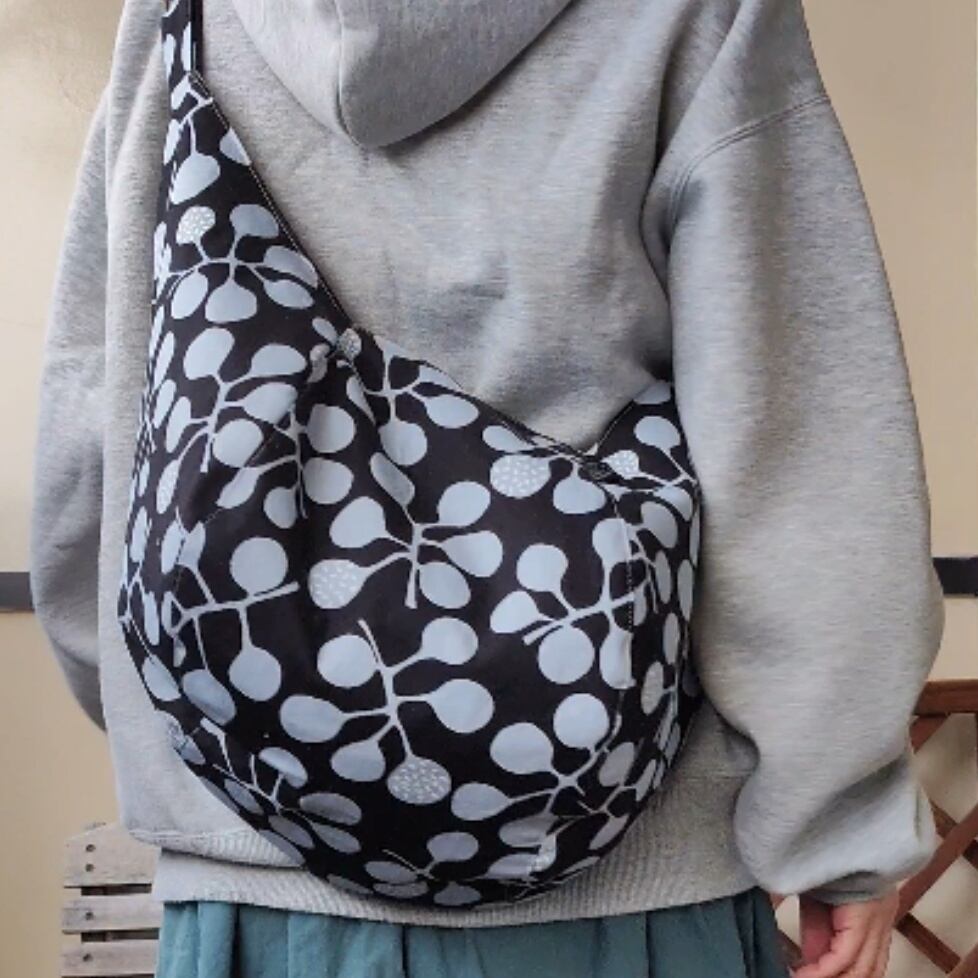 斜めがけするだけで可愛い♡ポンバッグPB59北欧風丸い葉っぱブラック♡ショルダーバッグ体にフィットするボディバッグ斜めがけバッグ