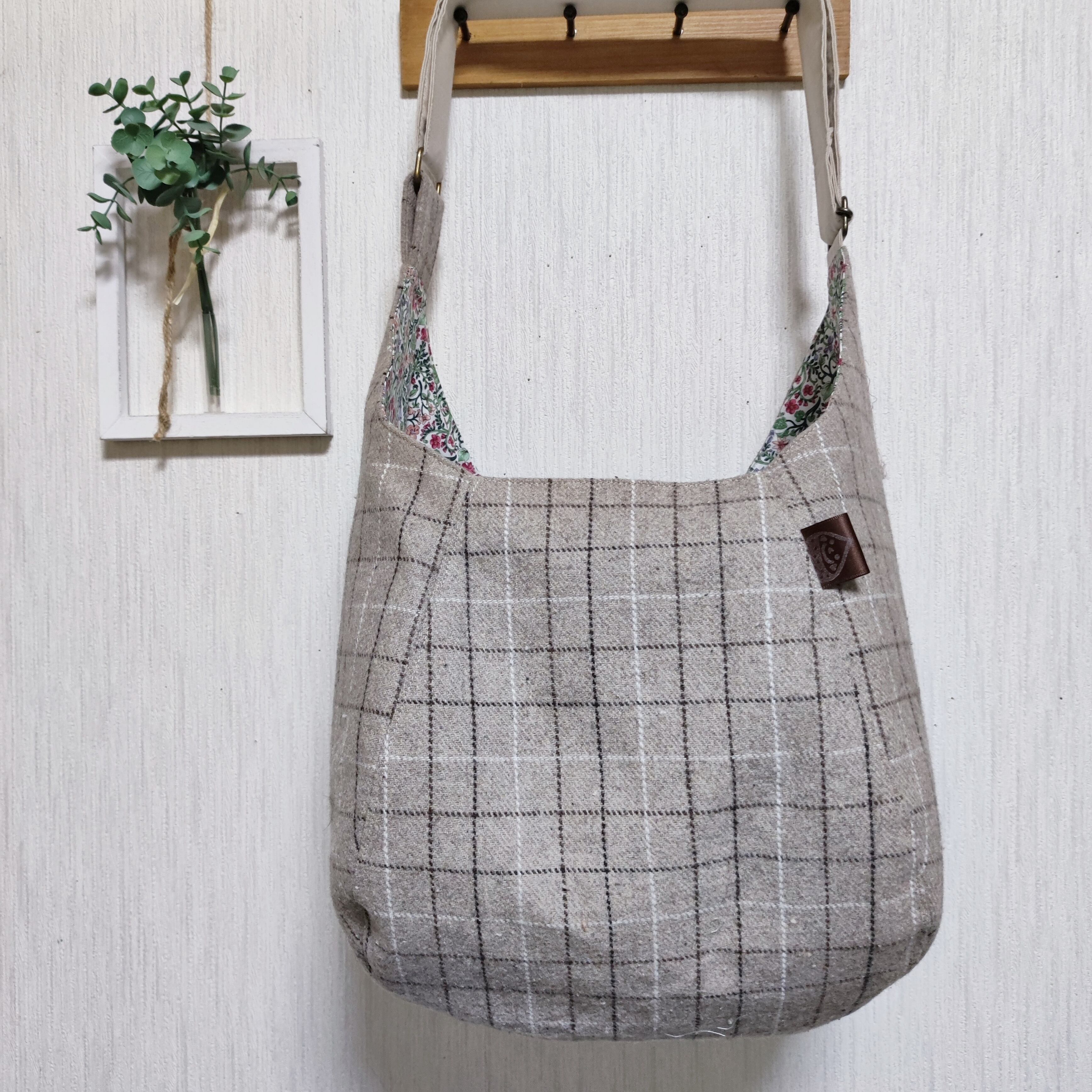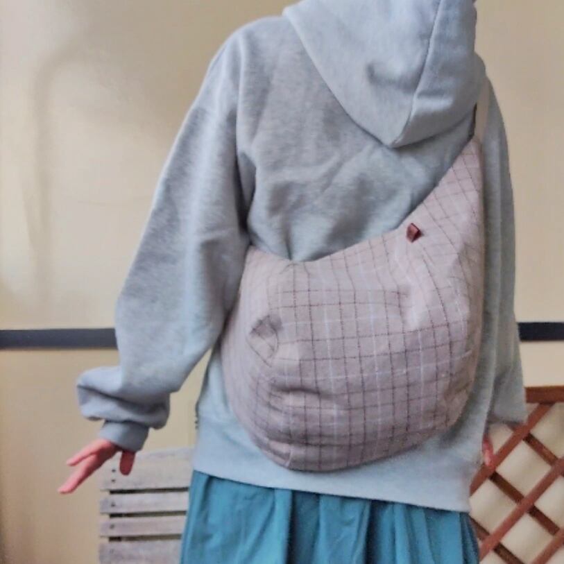 斜めがけするだけで可愛い♡ポンバッグPB61ウール混チェック♡ショルダーバッグ体にフィットするボディバッグ斜めがけバッグ