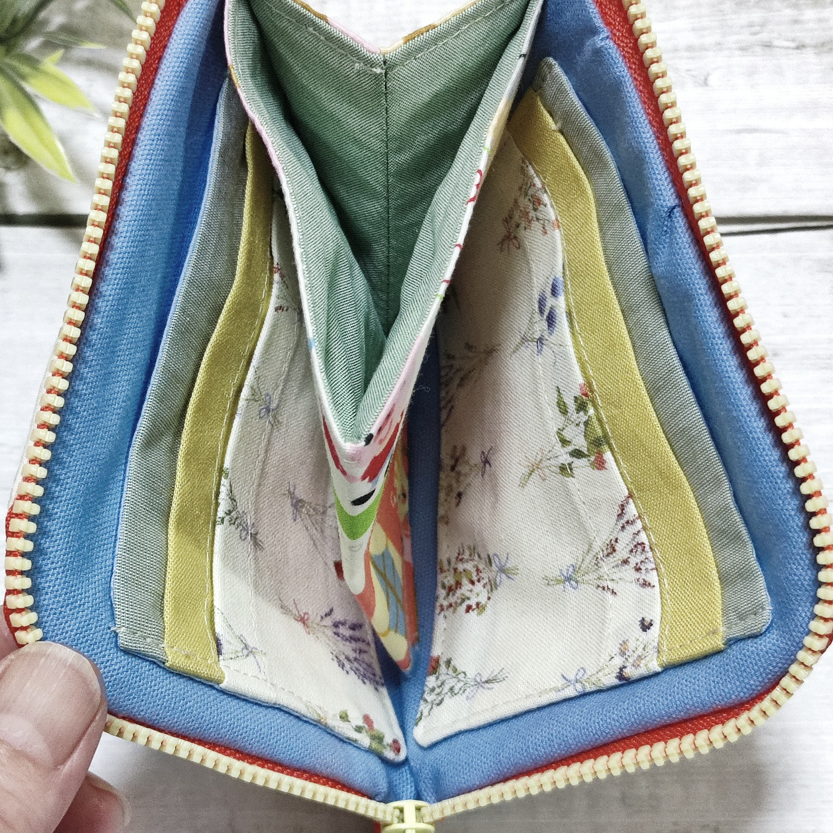 逆さにしても小銭が散らからない作りになっています。(ファスナーから小銭入れまでを1円玉の直径以下になっているためです)
