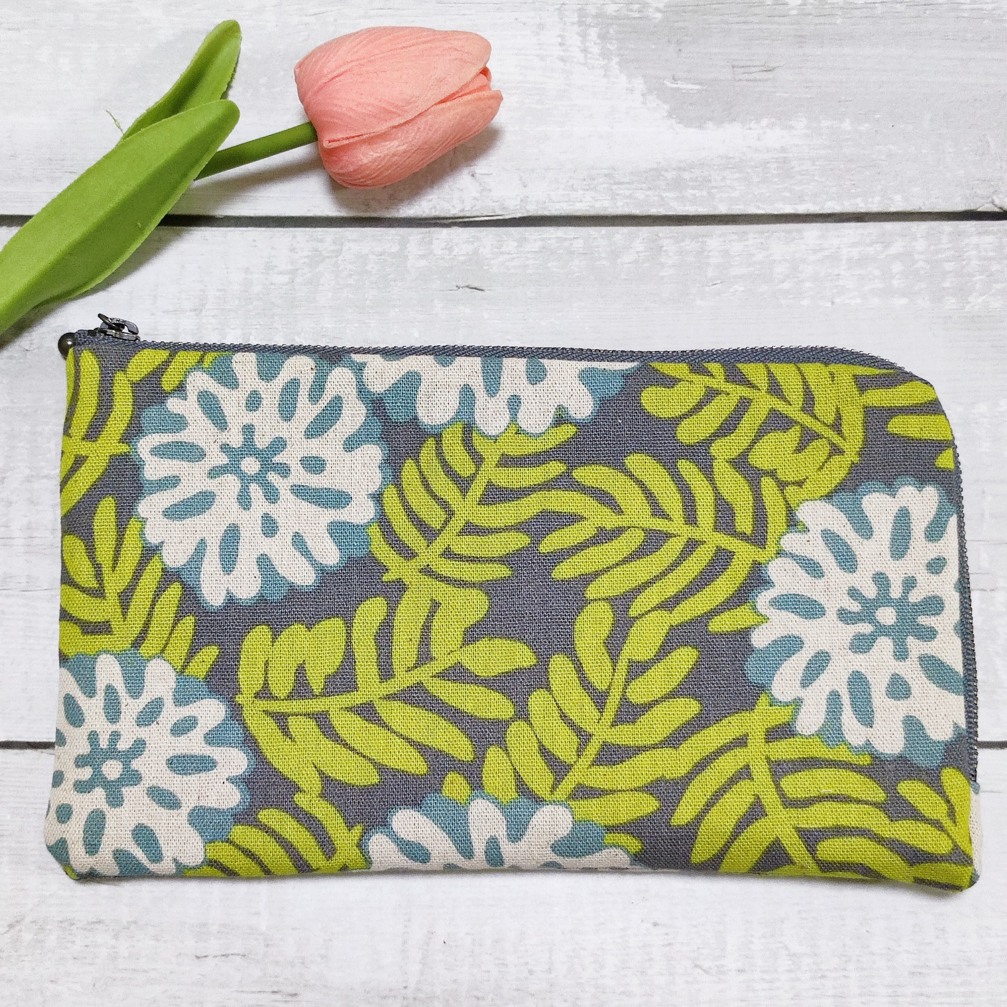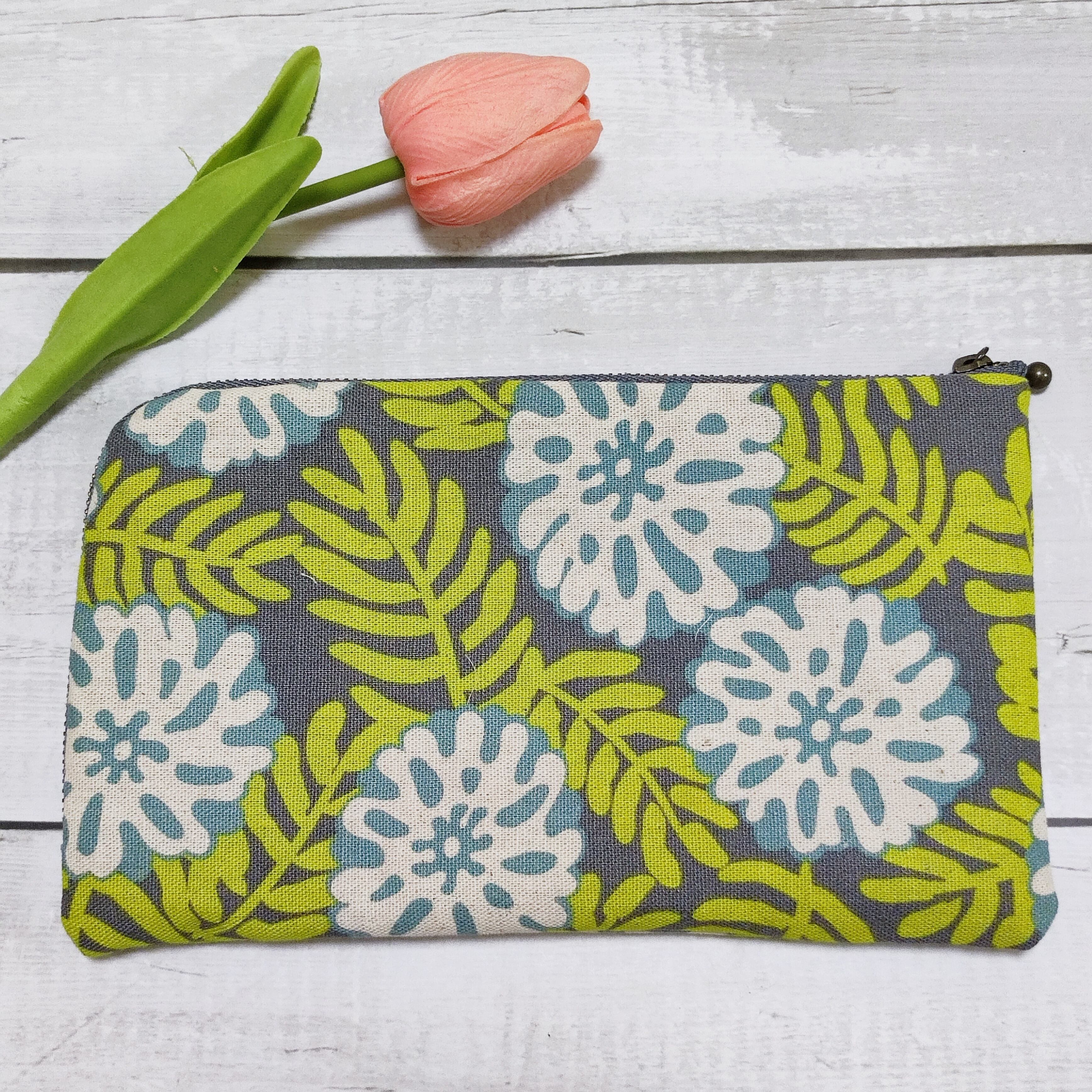 通院にはコレ!お薬手帳&診察券財布mcw02ボタニカルグレー 診察券ポケット12+隠しポケット