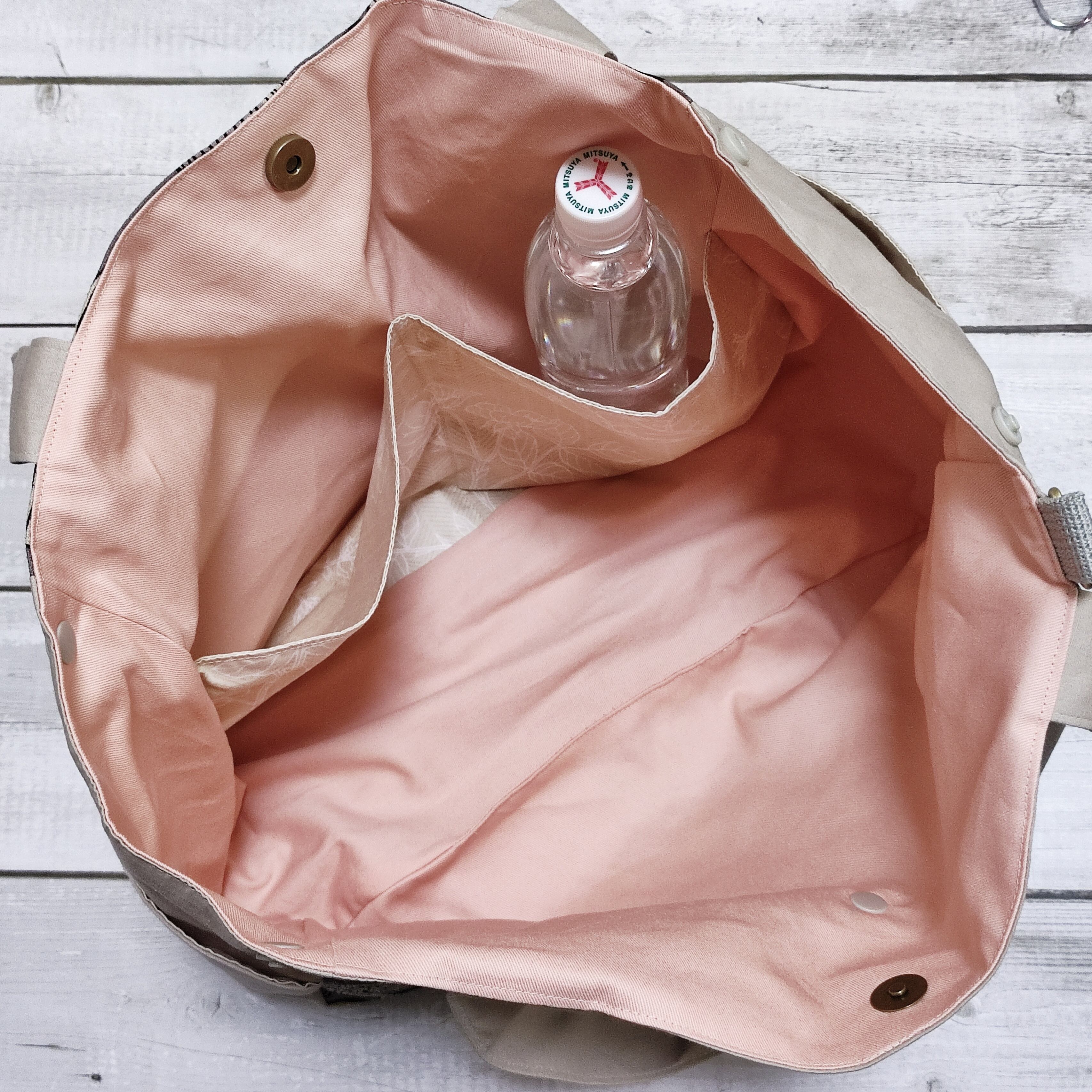 前ポケットにはスナップボタンを付けて広がらないようになってます。