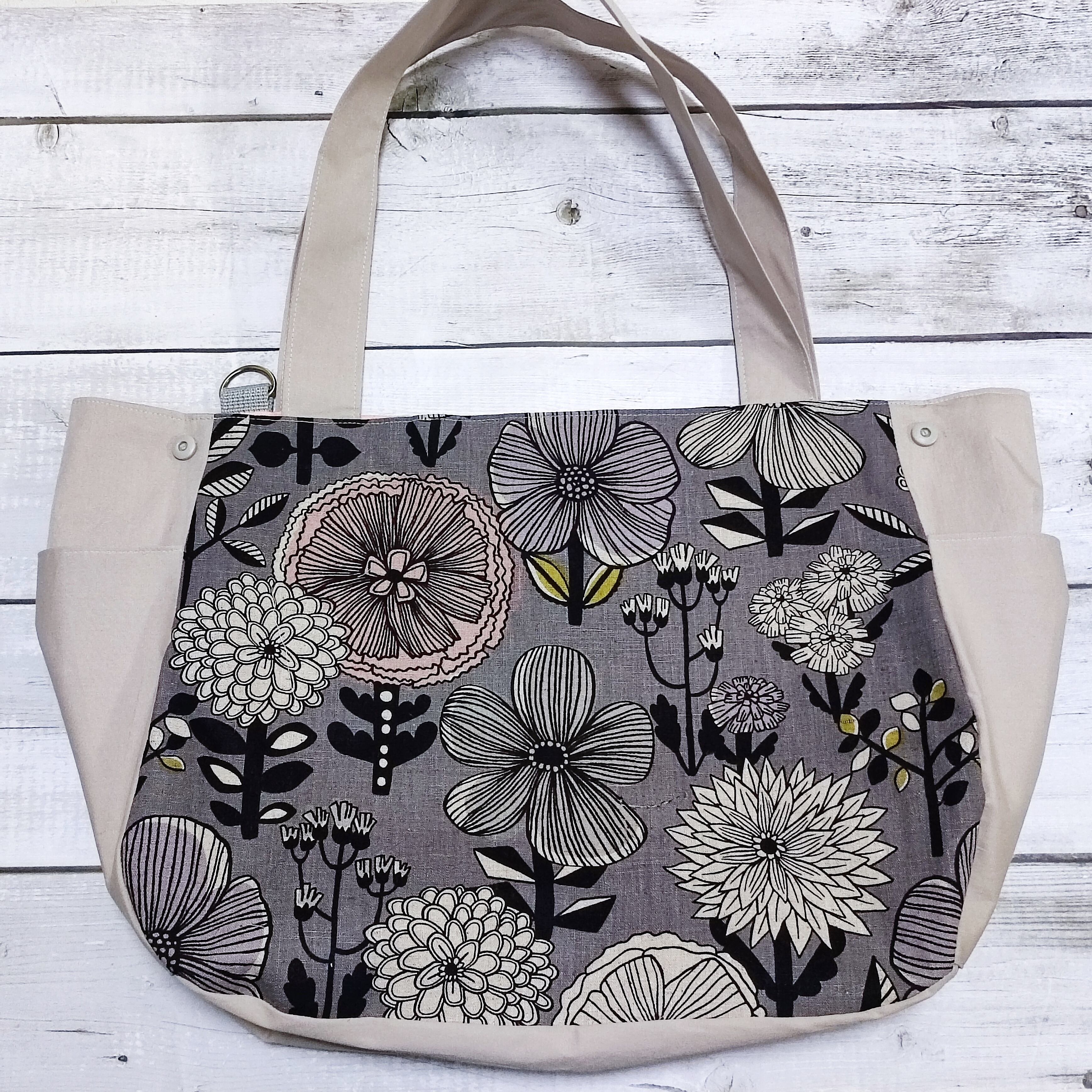 荷物多い方にぴったり☆大容量3wayバッグ☆北欧大きな花柄3way47☆荷物の量で持ち方や形が変わる!