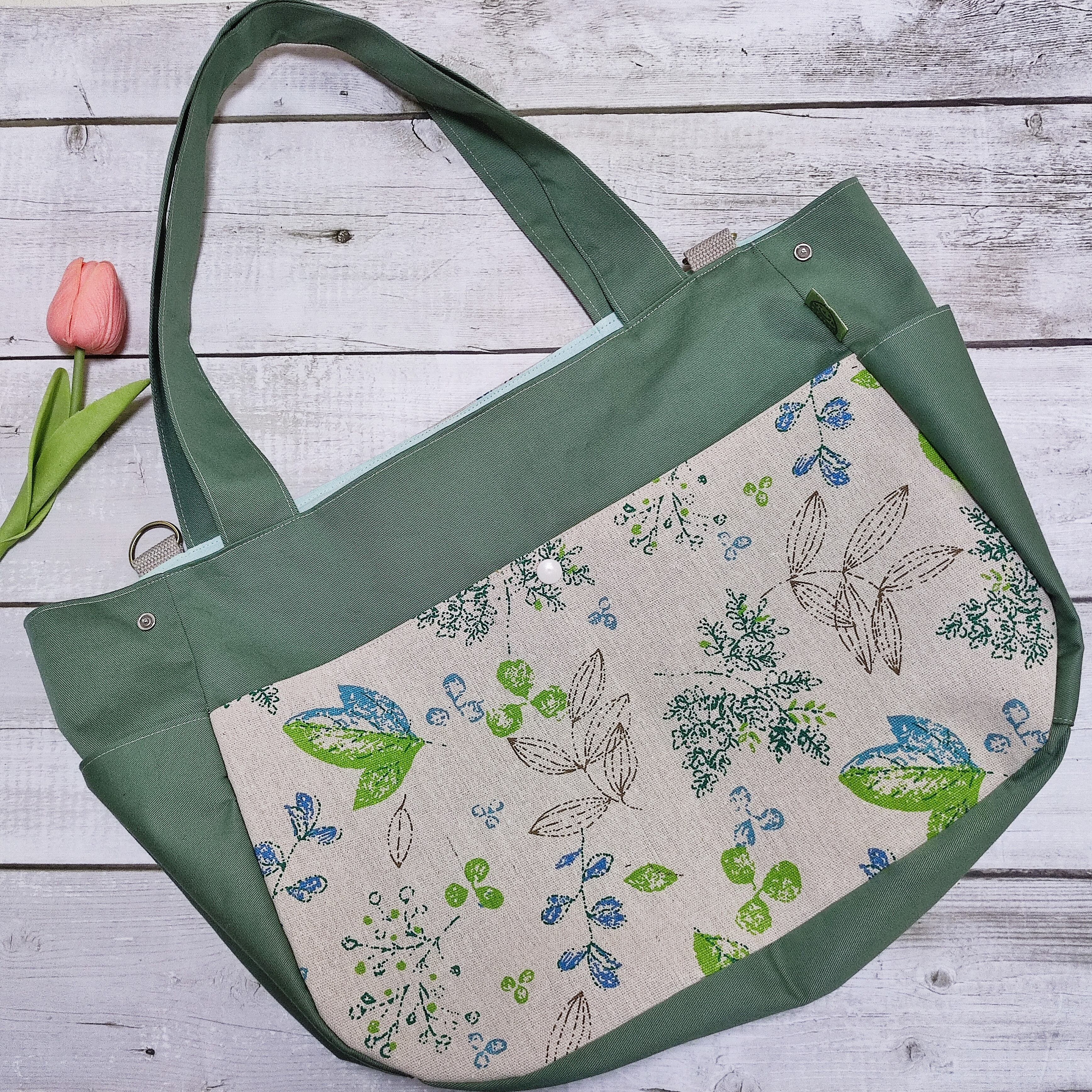 荷物多い方にぴったり☆大容量3wayバッグ☆ナチュラルリーフボタニカル3way49☆荷物の量で持ち方や形が変わる!