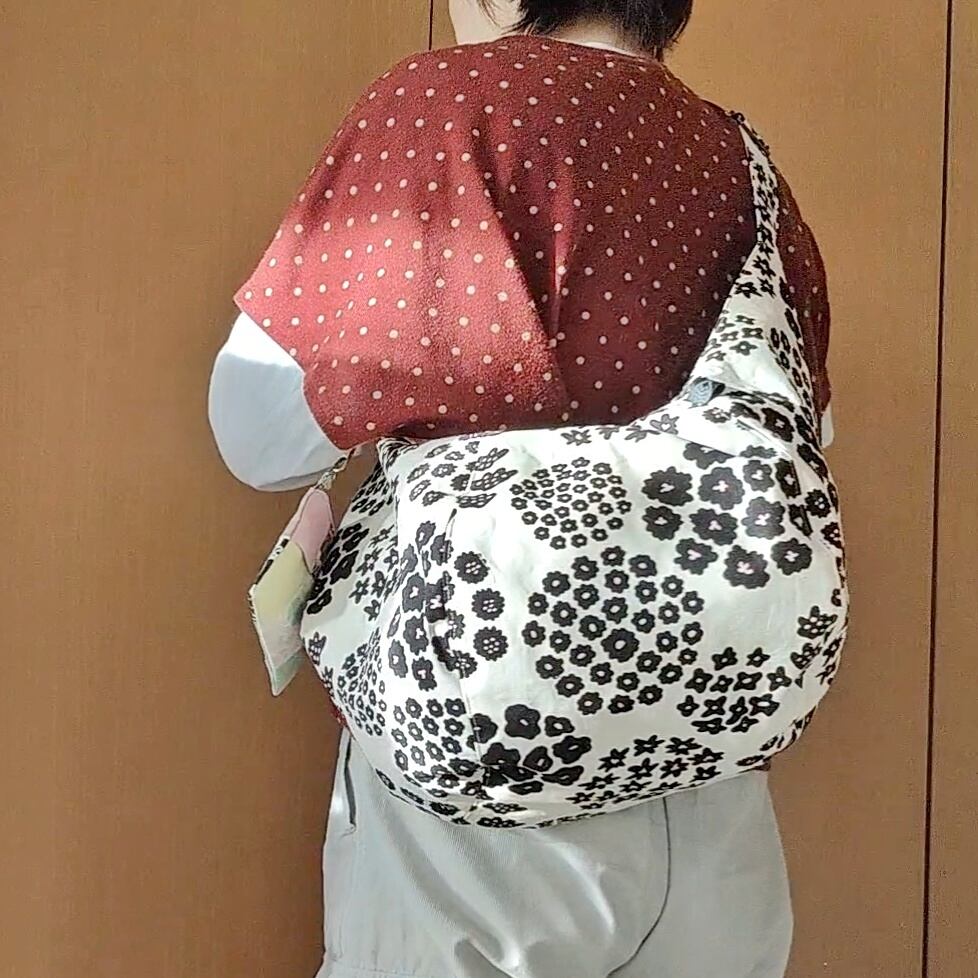 斜めがけするだけで可愛い♡ポンバッグPB62北欧サークルフラワー黒✕桃♡ショルダーバッグ体にフィットするボディバッグ斜めがけバッグ