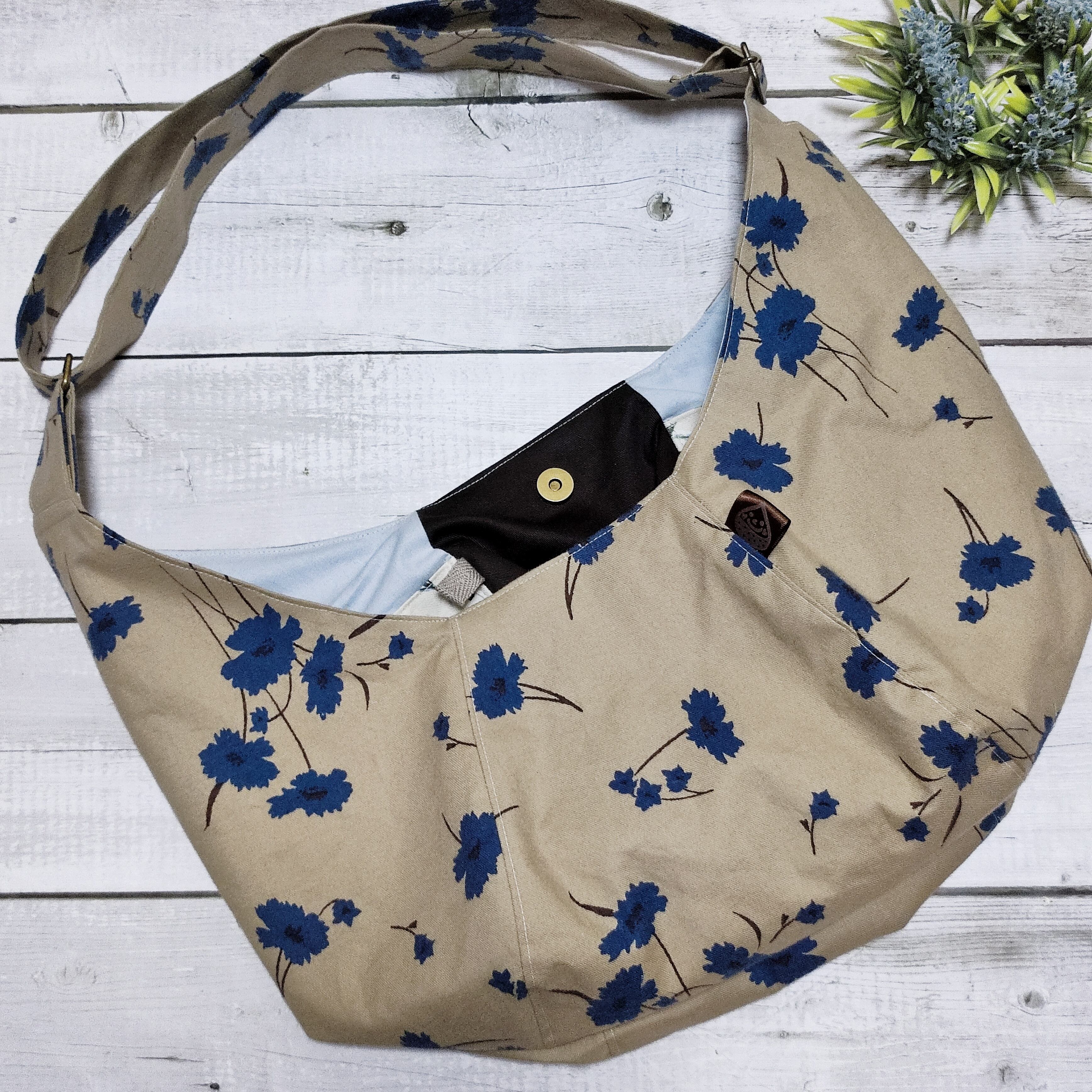 斜めがけするだけで可愛い♡ポンバッグPB63青い花ピーチスキン♡ショルダーバッグ体にフィットするボディバッグ斜めがけバッグ
