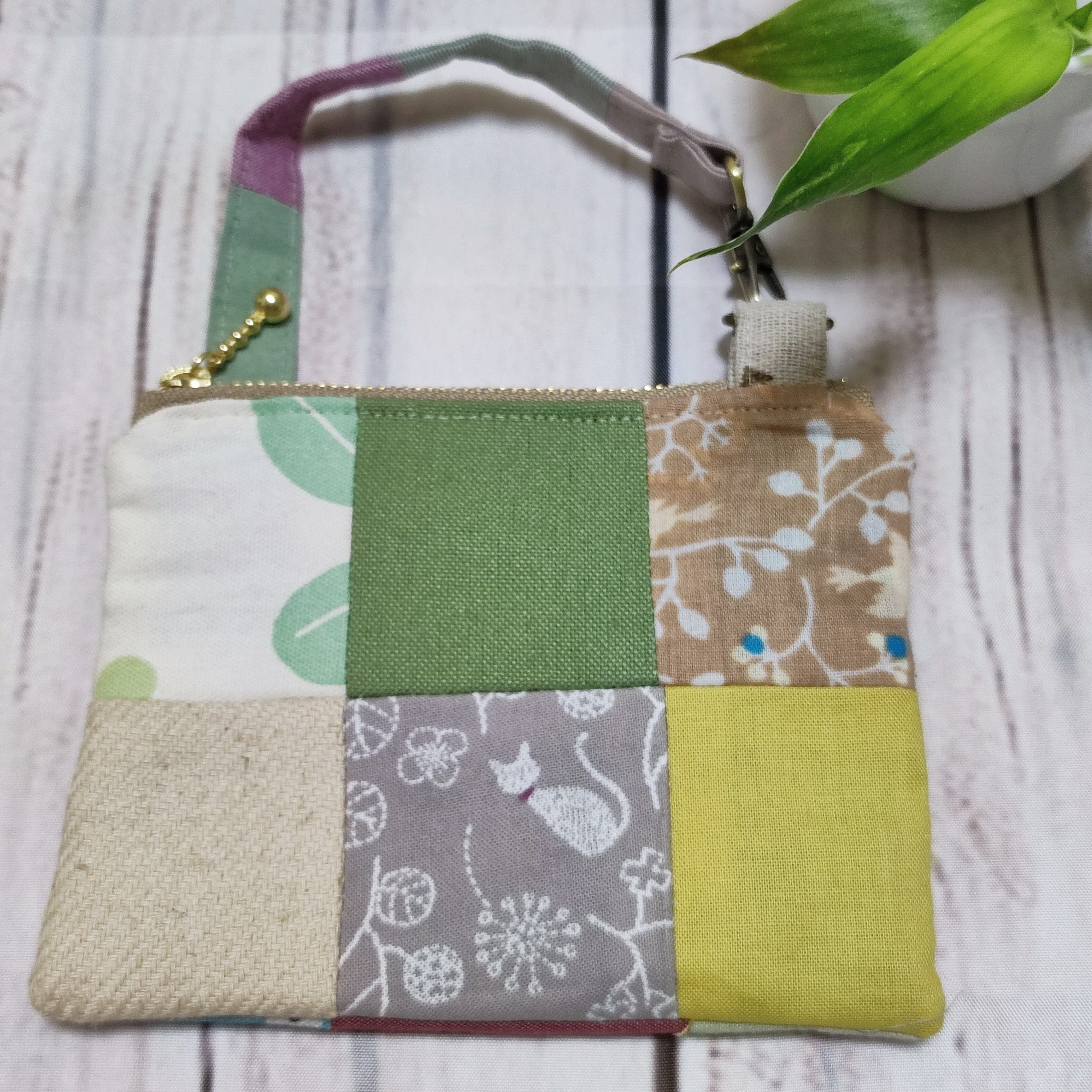 可愛いパッチワーク布が目を引く、バッグに取付けられるミニポーチです♡