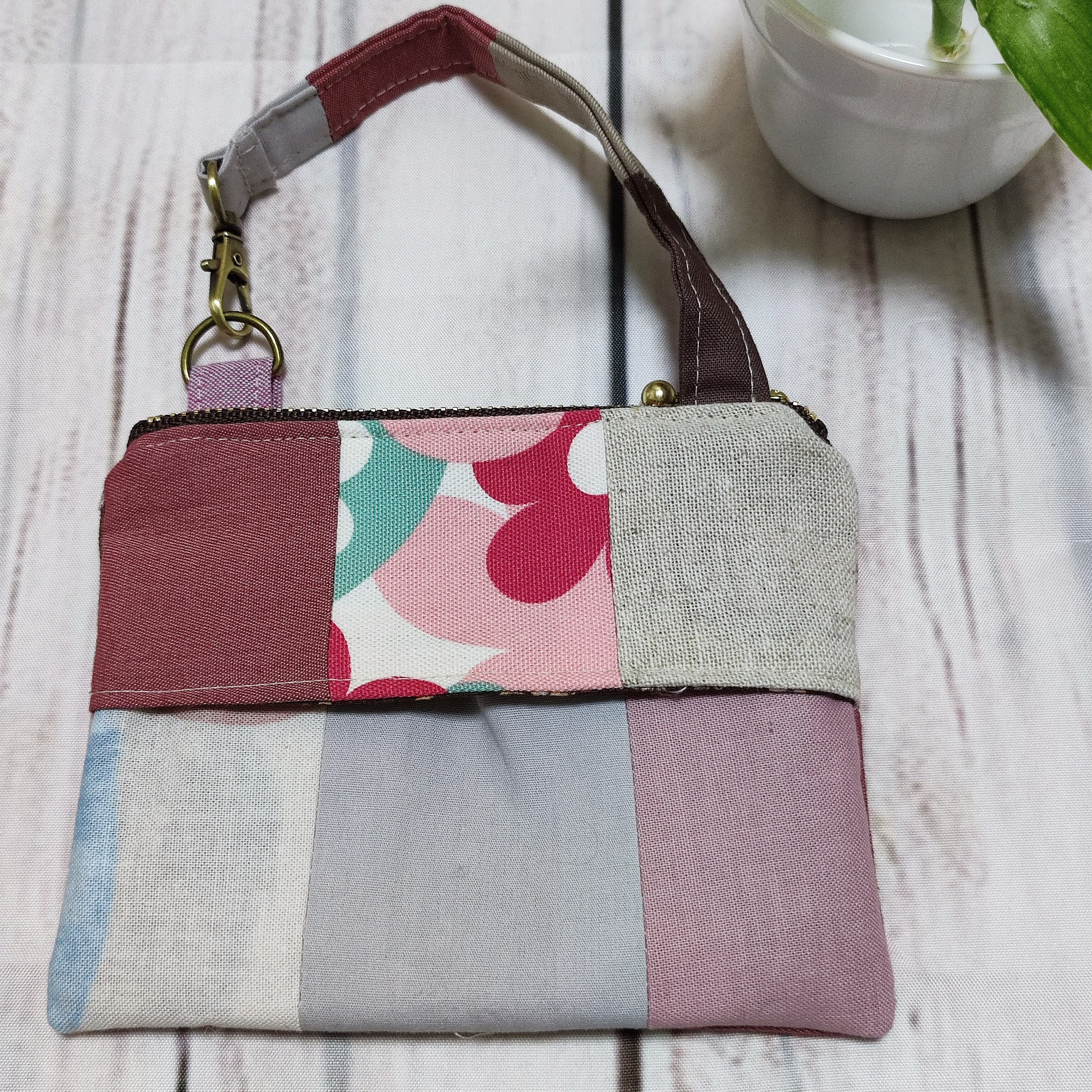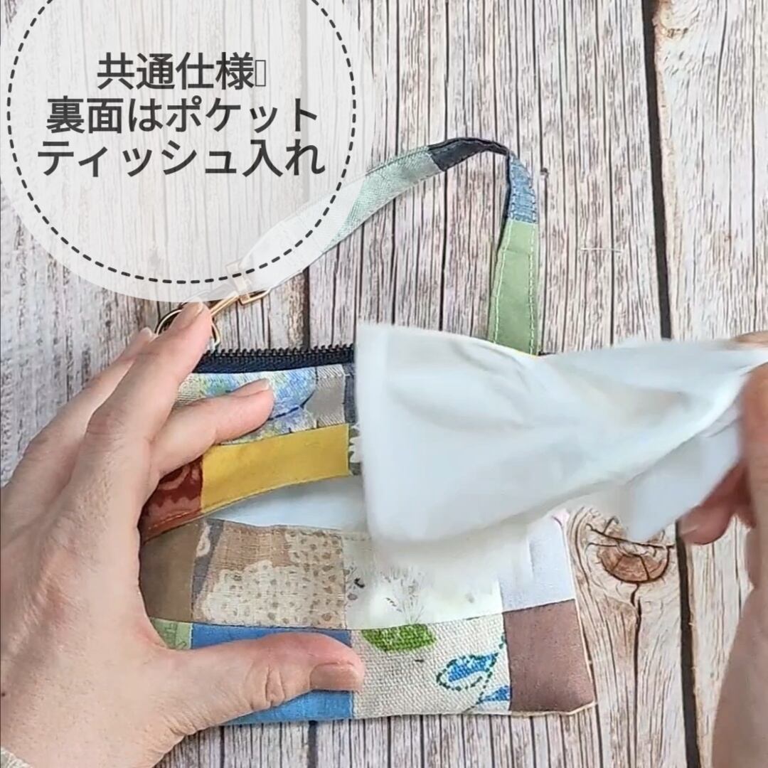 可愛いパッチワーク布が目を引く、バッグに取付けられるミニポーチです♡