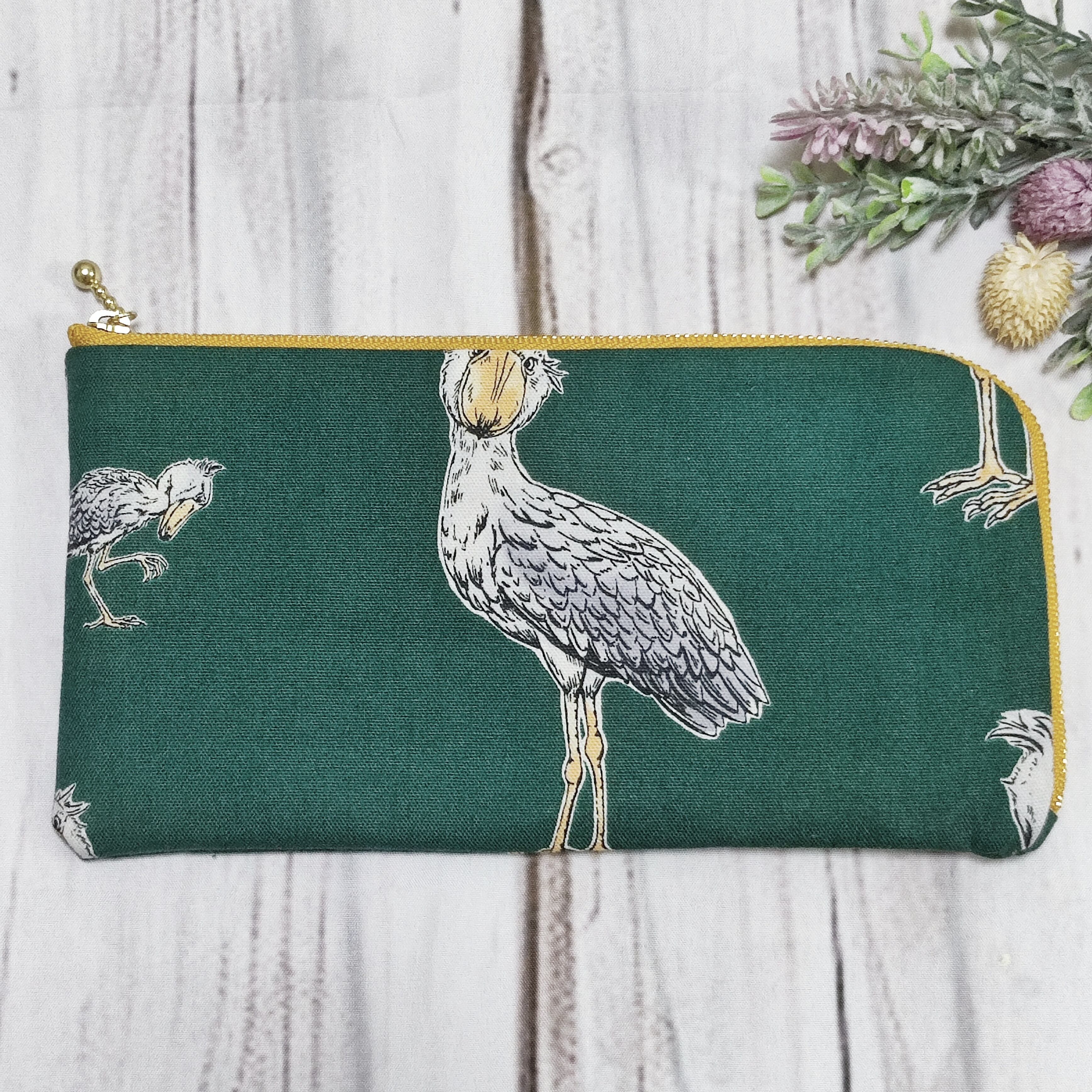 肩こりさんにオススメ!軽くて薄い長財布LW115シュールハシビロコウ緑ポケット6つ+隠しポケット