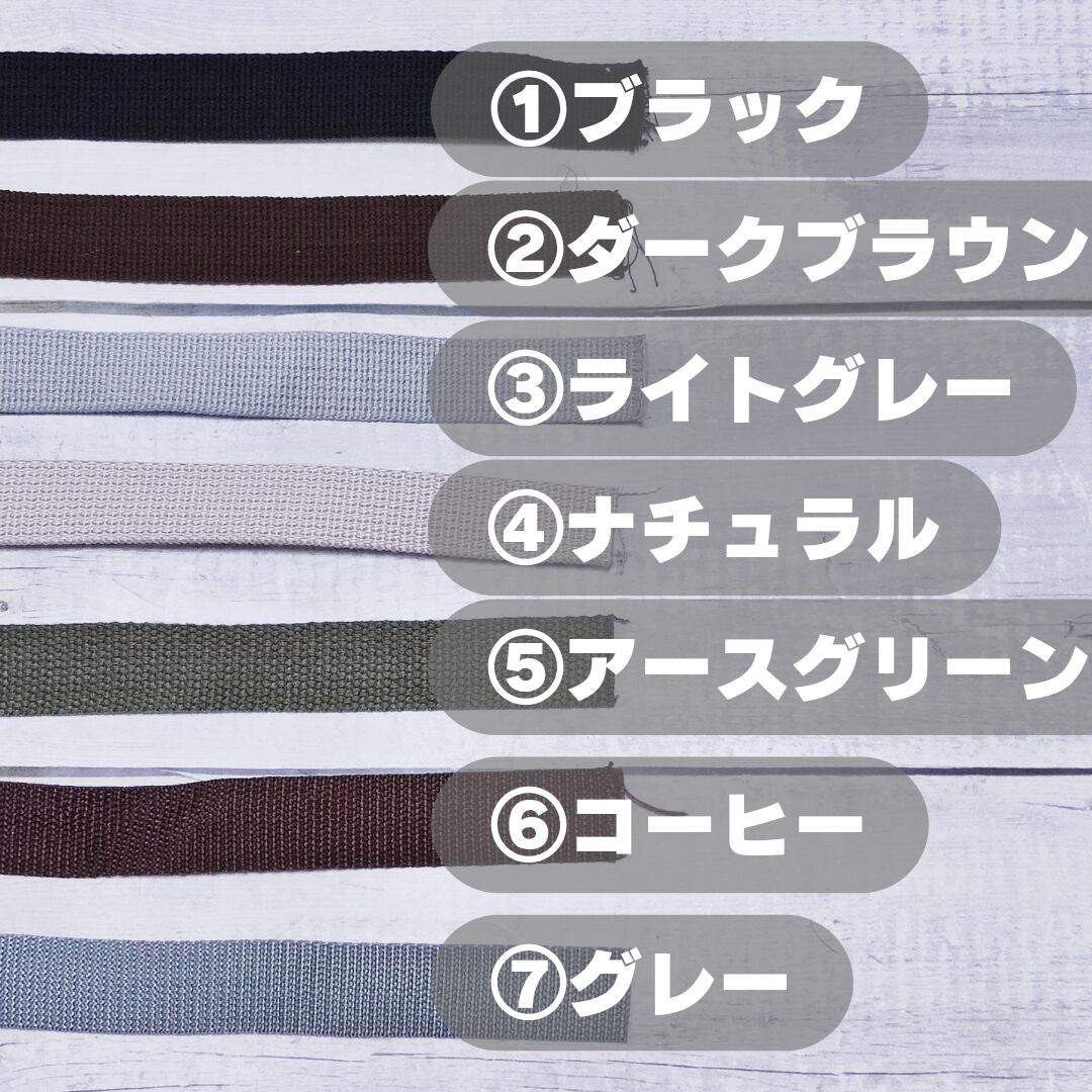 ショルダーベルトは8色から選んでいただけます。無しもお選びいただけます。